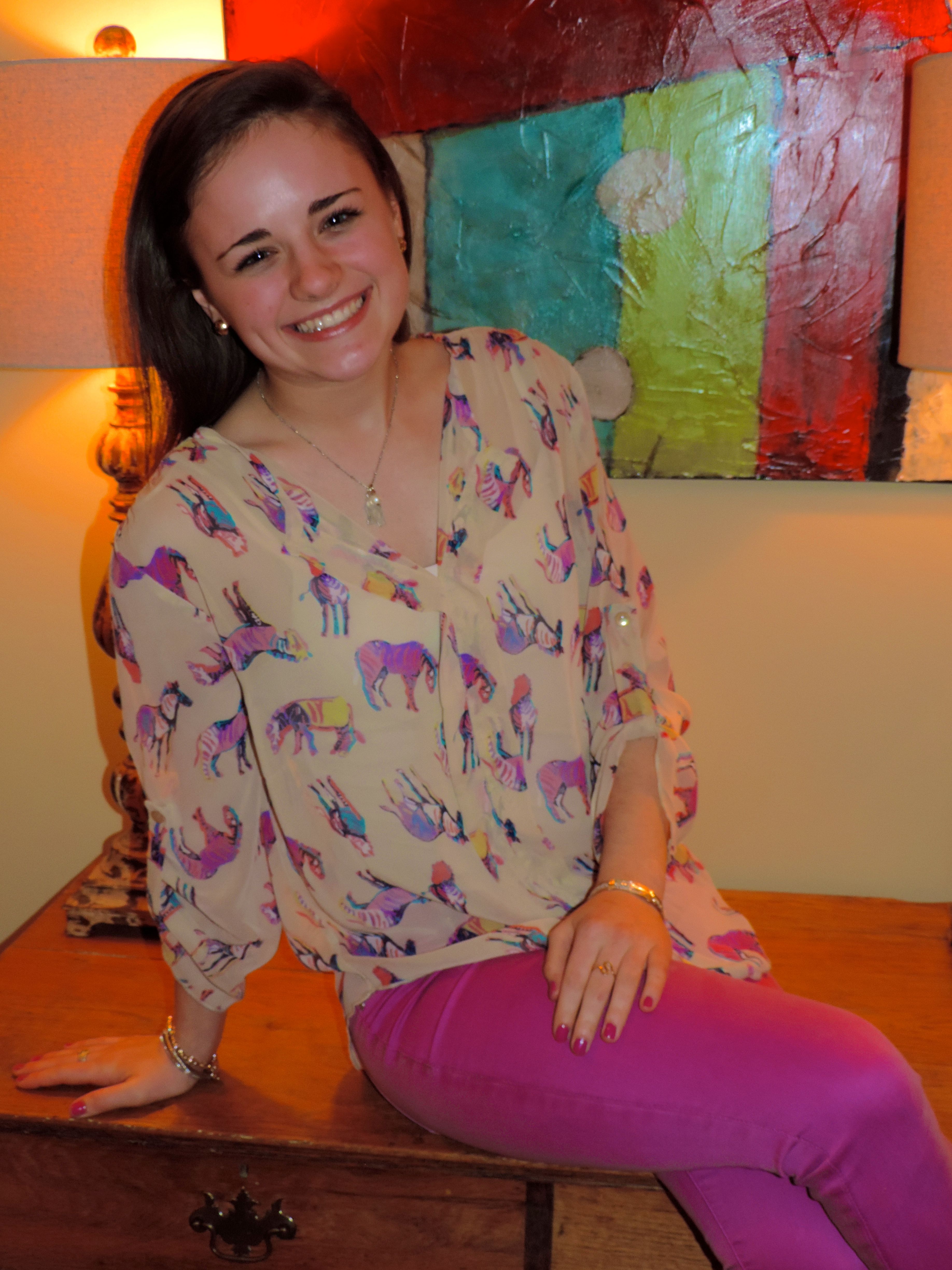 So who wants to hear about the color of the year?!? Okay so, I don’t know if I am the only one but I am always so excited to hear what the color of the year is. In the females favor, it’s ORCHID! This is such a pretty color and can match oh so many things. I want to tell you my favorite colors to match radiant orchid with and maybe you might like a few of them. As you can see in the picture, I have paired orchid jeans with a beige blouse. But as you look into the zebras on the shirt, there are many more color options. My favorite is navy, green, black, taupe, yellow, blue, sea foam, and purple. See… you can go crazy with these color options. Dress up and add orchid, always.